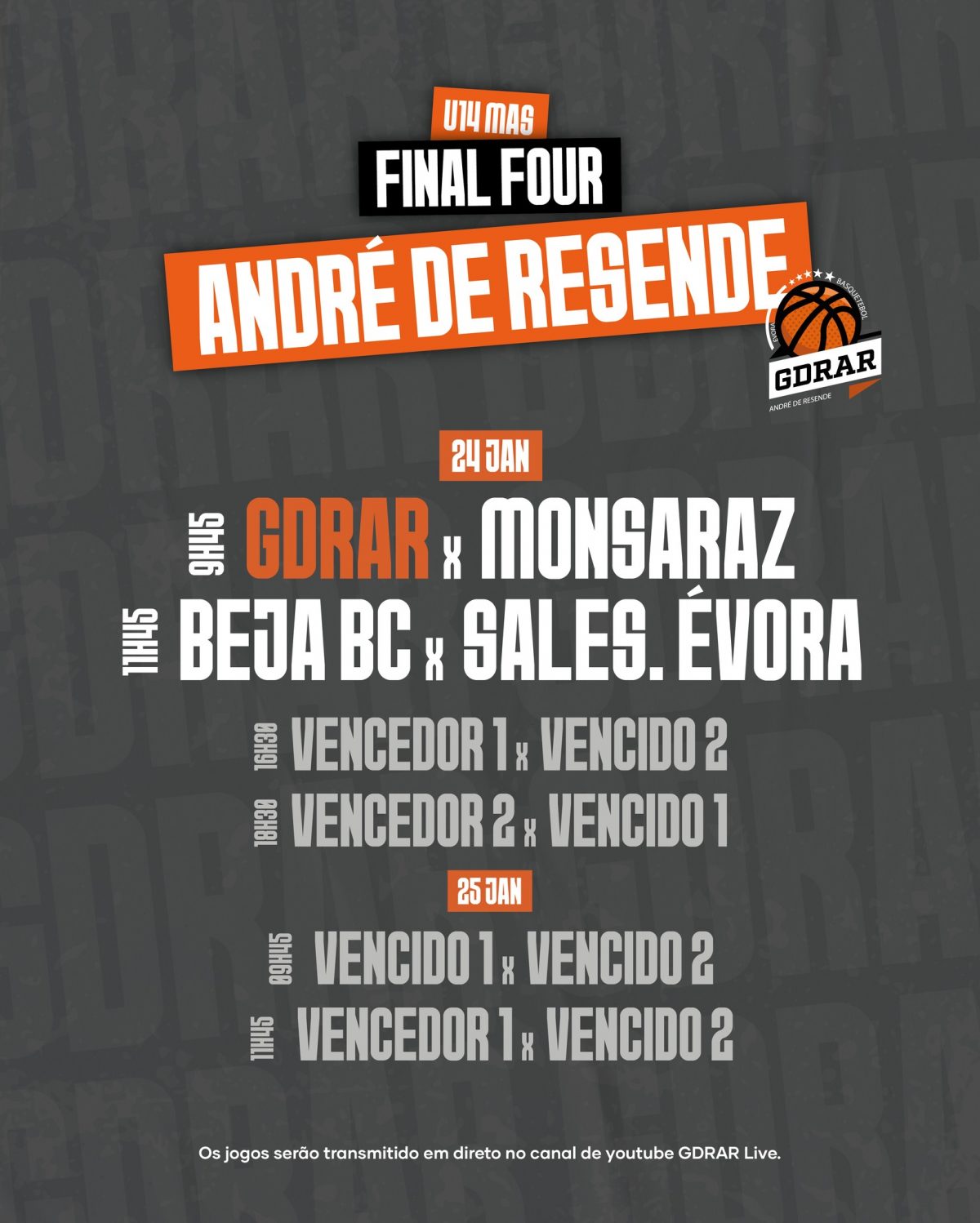 A nossa equipa U14 Masculina do GDRAR vai disputar a Fase Final do Campeonato Regional, em nossa casa, e precisamos do vosso apoio nas bancadas!