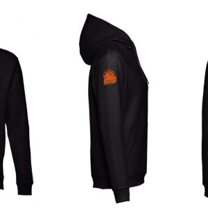 Sweat Preta – logo ombro laranja